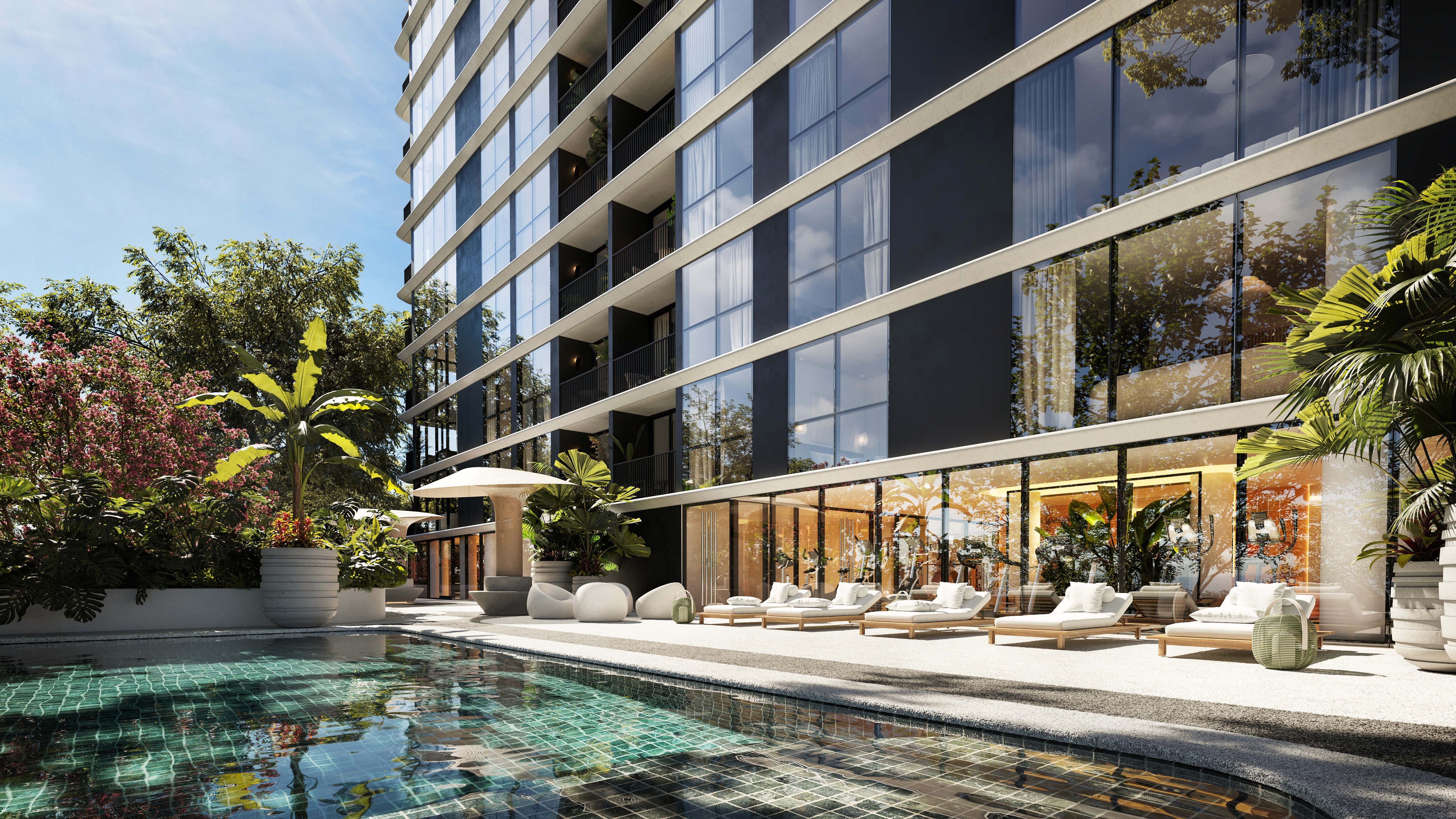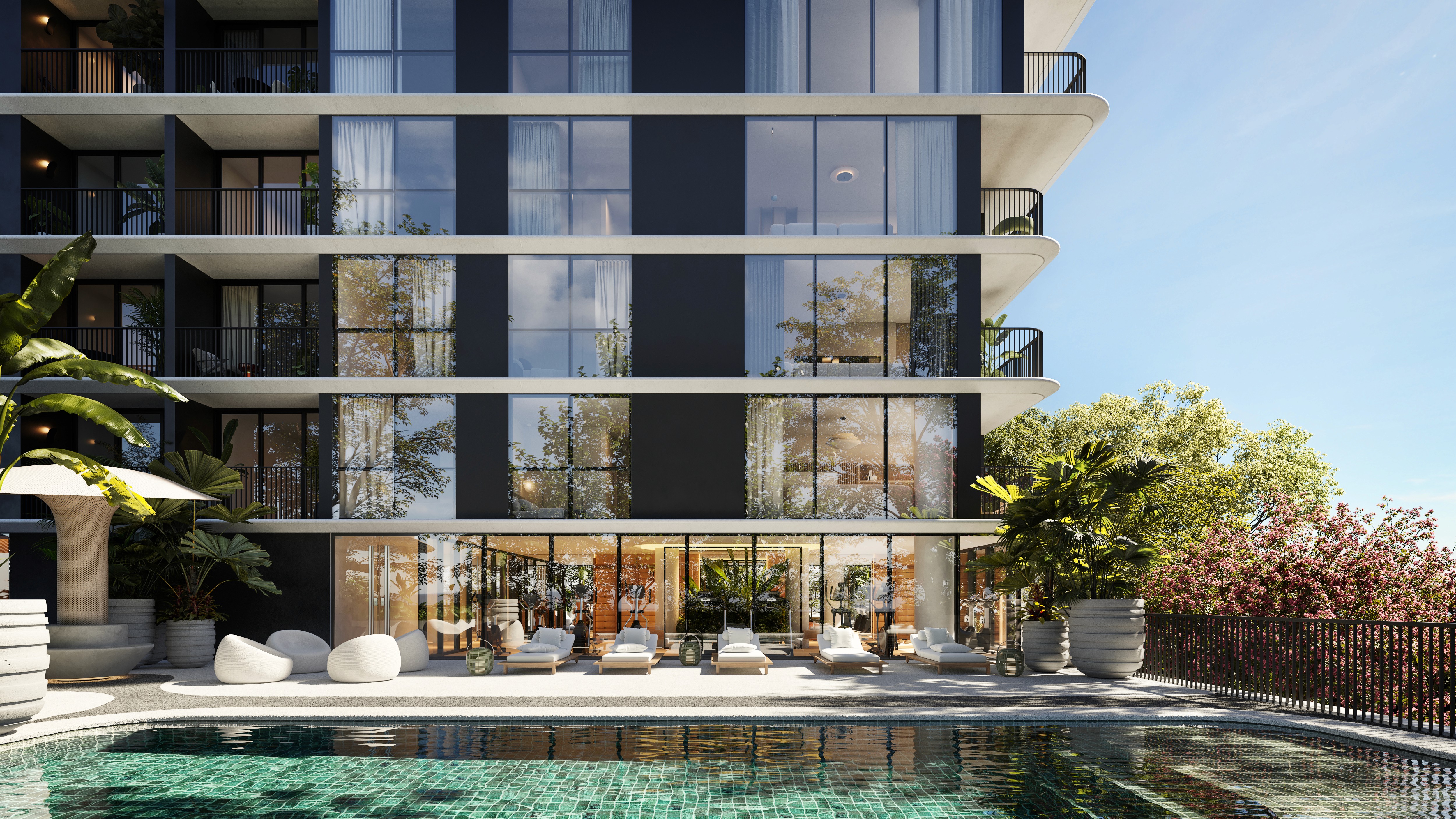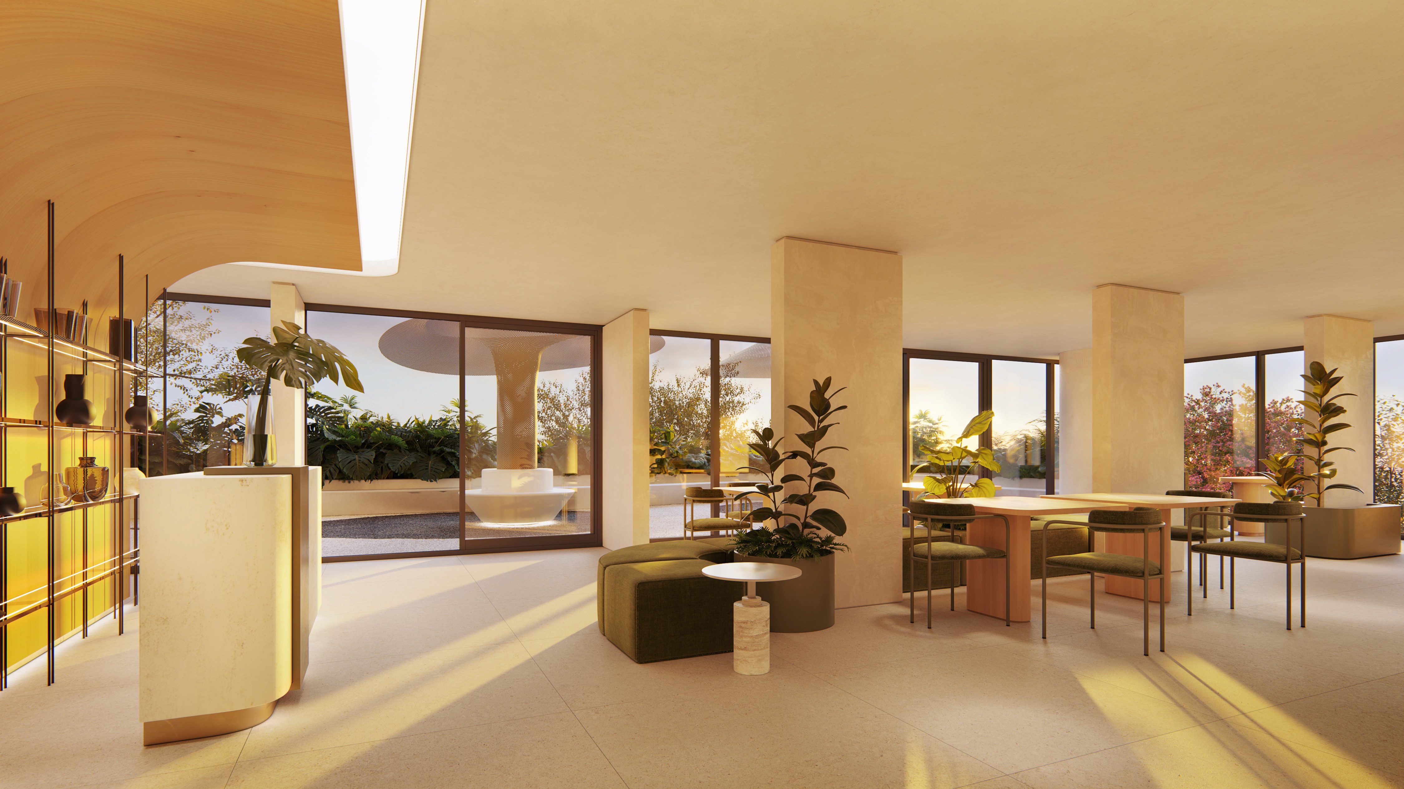 El diseño de E6 partió de su implantación estratégica frente a Ciudad Universitaria y al eje verde del Parque. La volumetría se resolvió en una torre esbelta, orientada para captar luz natural en los ambientes principales y abrirse hacia vistas abiertas del río y la ciudad. La planta baja se concibió permeable, con accesos transparentes y conexión fluida al boulevard peatonal. Los amenities en altura —terraza verde, cowork y gimnasio— prolongan la experiencia comunitaria y refuerzan la idea de un edificio pensado para el ritmo urbano actual: dinámico, flexible y en diálogo con el entorno.