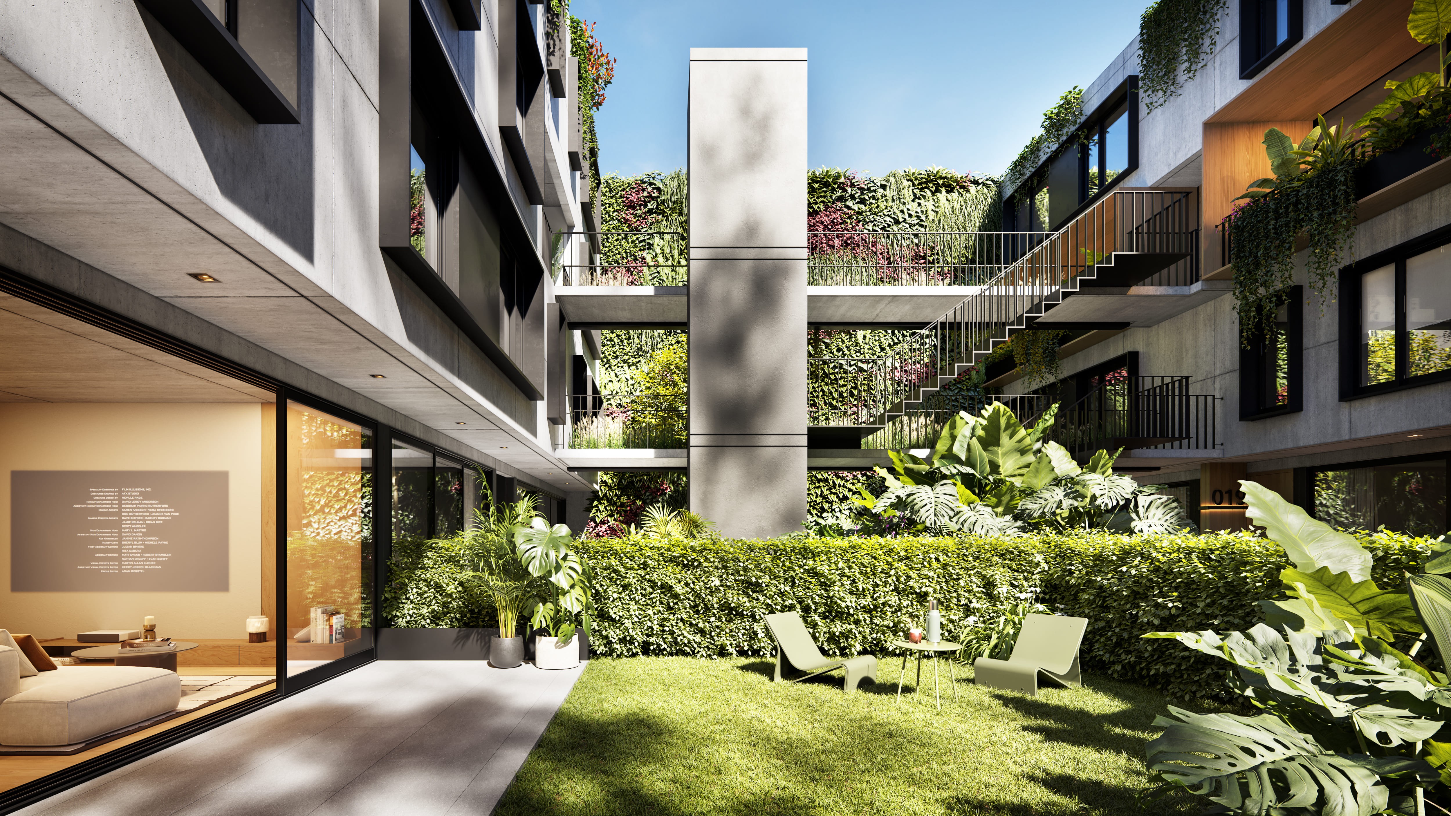 Goyena es un desarrollo residencial contemporáneo ubicado en el corazón de Caballito, sobre la avenida más emblemática del barrio. Concebido como un jardín urbano, combina naturaleza y vida comunitaria en un entorno moderno que integra casas urbanas y departamentos. Espacios comunes como SUM, cowork, pileta y parrillas refuerzan la idea de un estilo de vida activo y conectado.