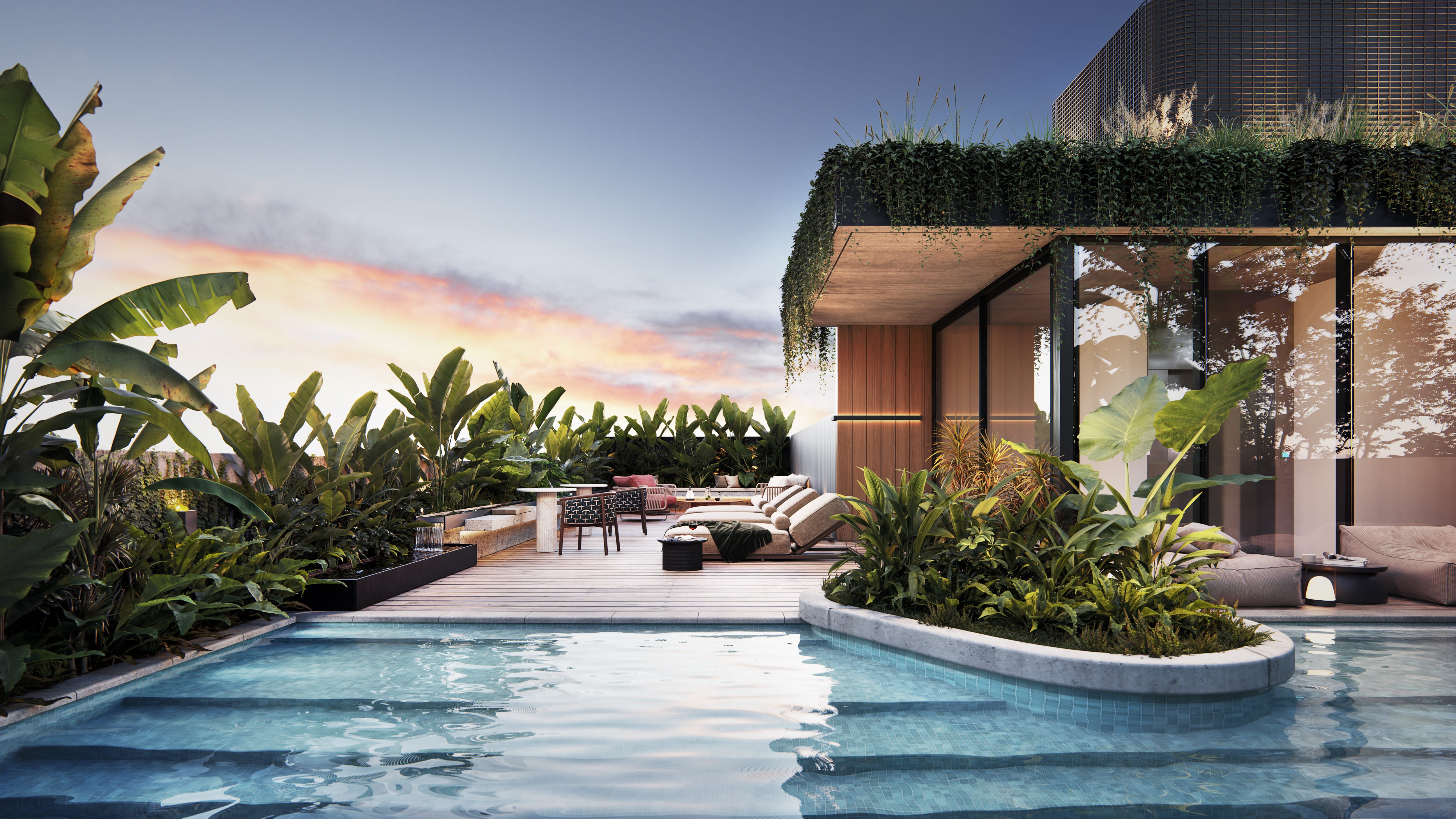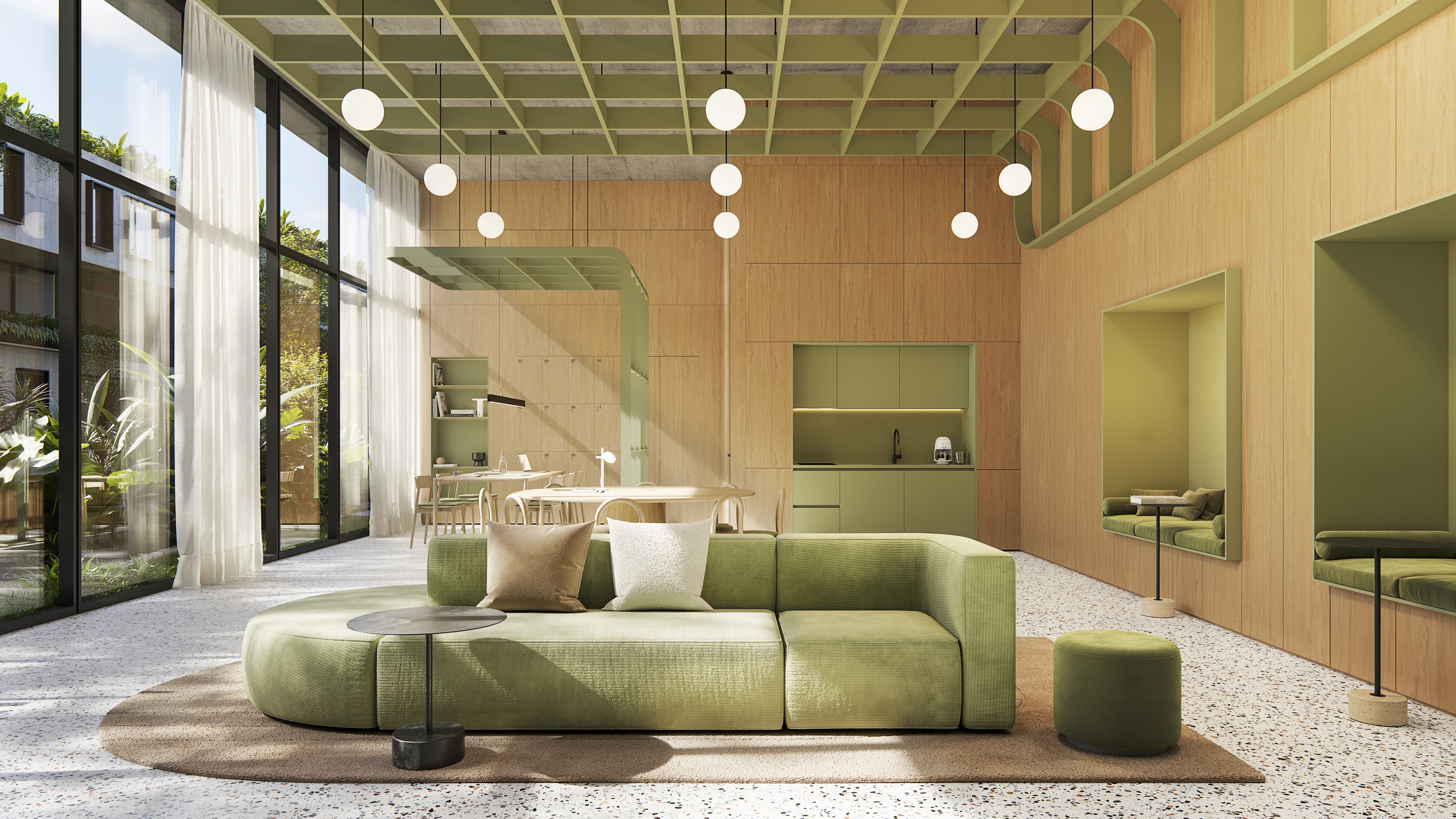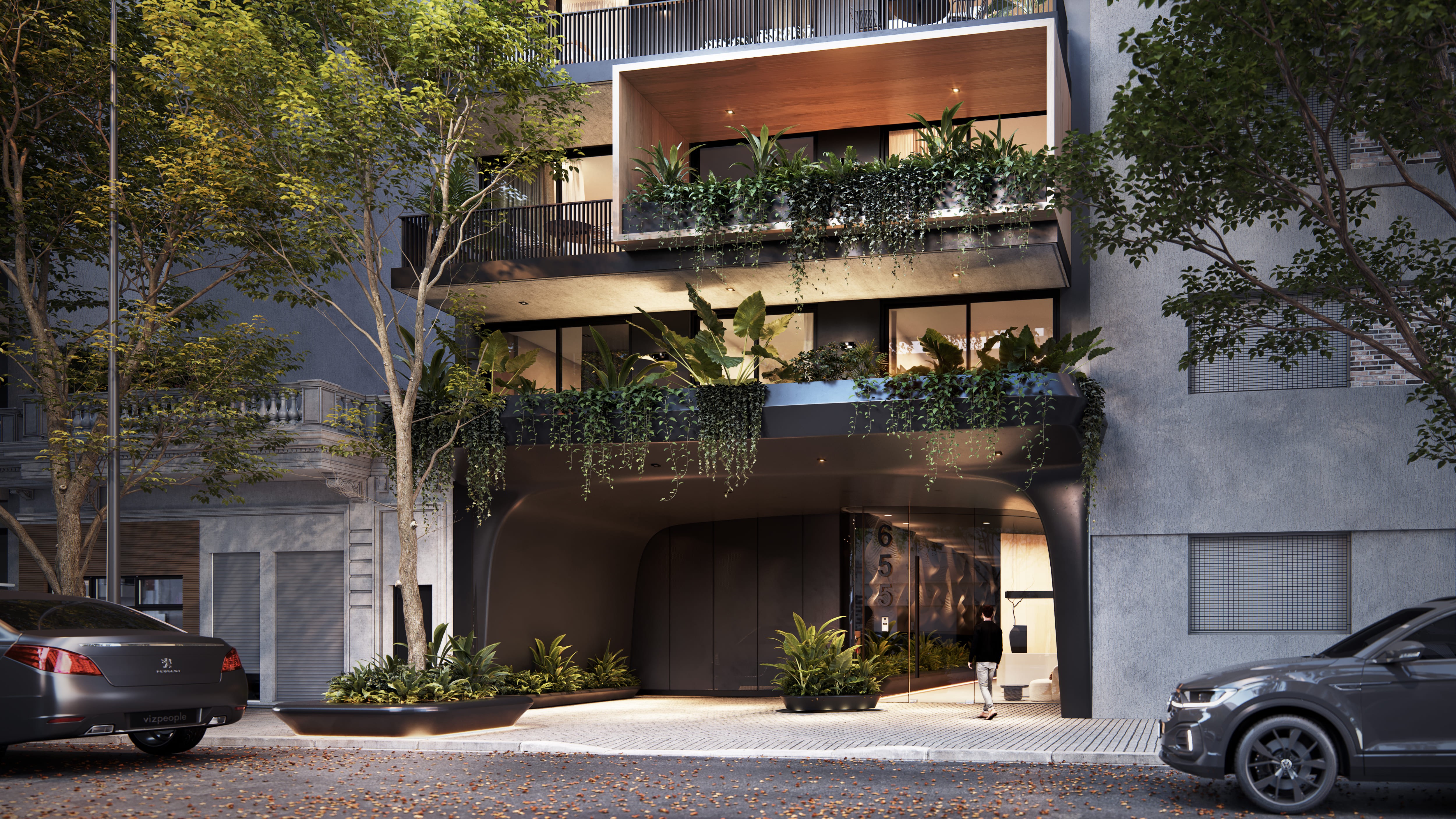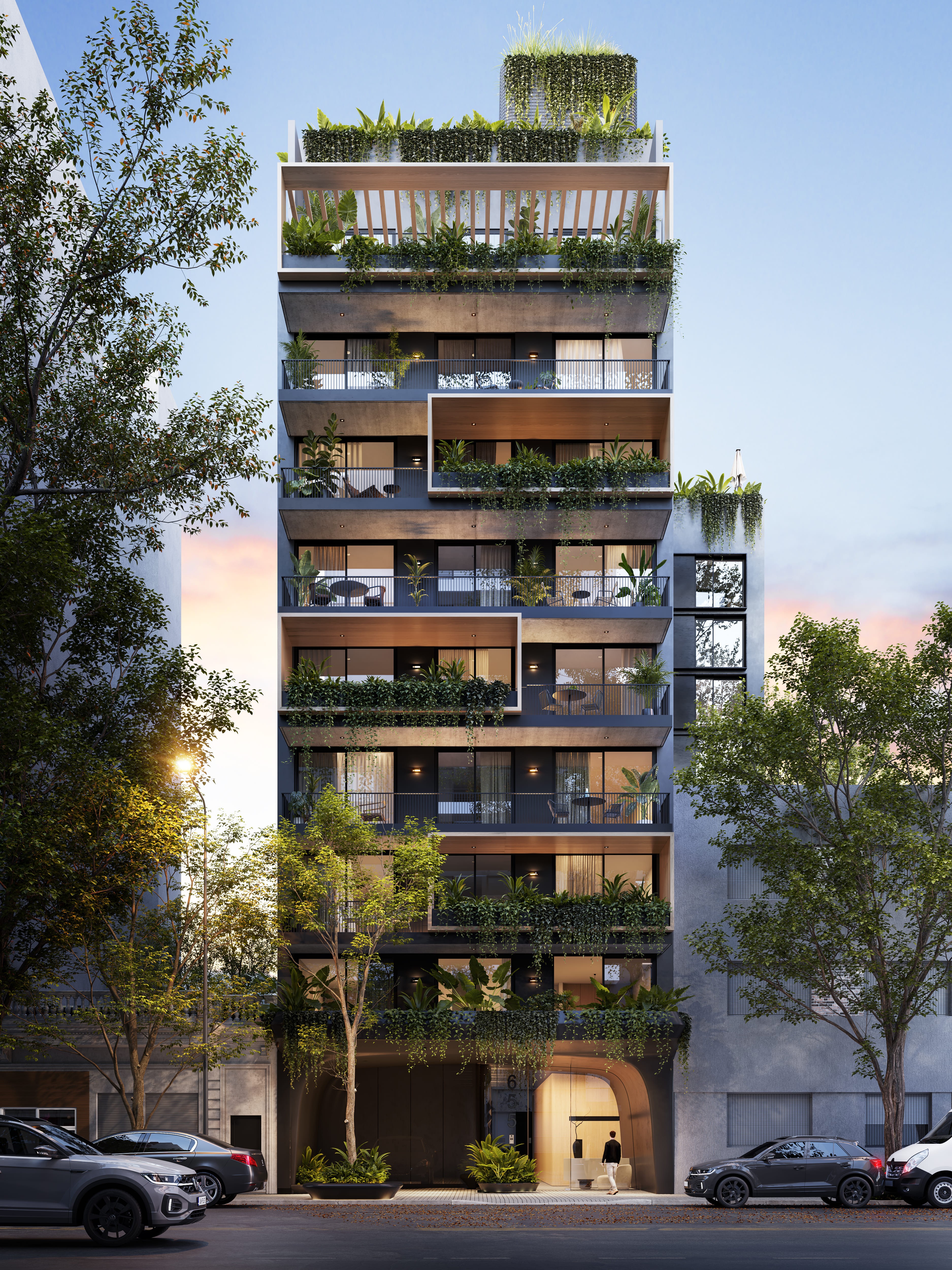 El proyecto se organiza a partir del centro de manzana, donde la arquitectura busca maximizar la luz natural y las visuales hacia los espacios verdes. La disposición de las unidades promueve privacidad y, al mismo tiempo, encuentros comunitarios en terrazas y áreas comunes. La materialidad se plantea sobria y cálida, pensada para dialogar con el carácter residencial de la avenida y generar continuidad entre lo público y lo privado.